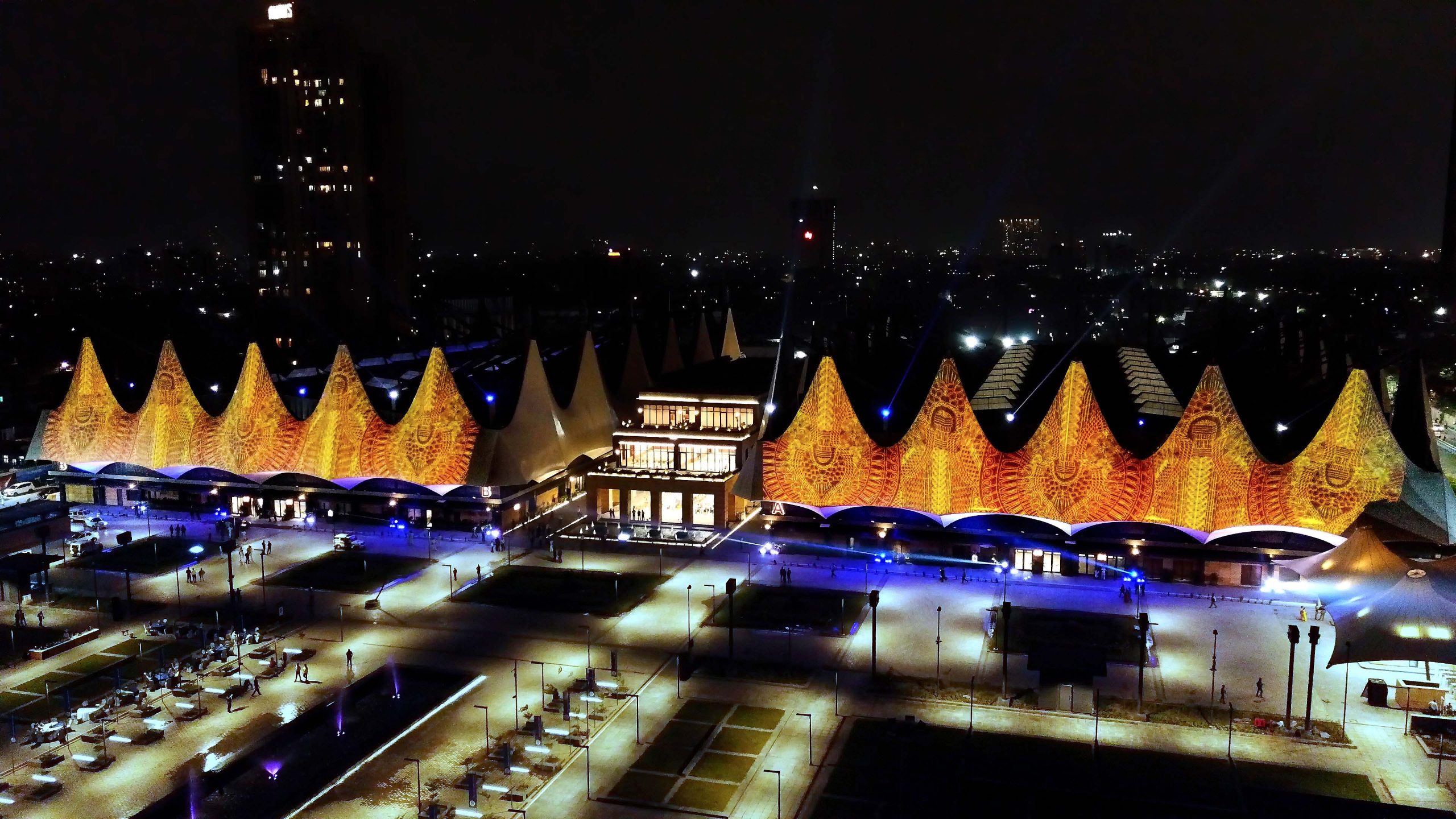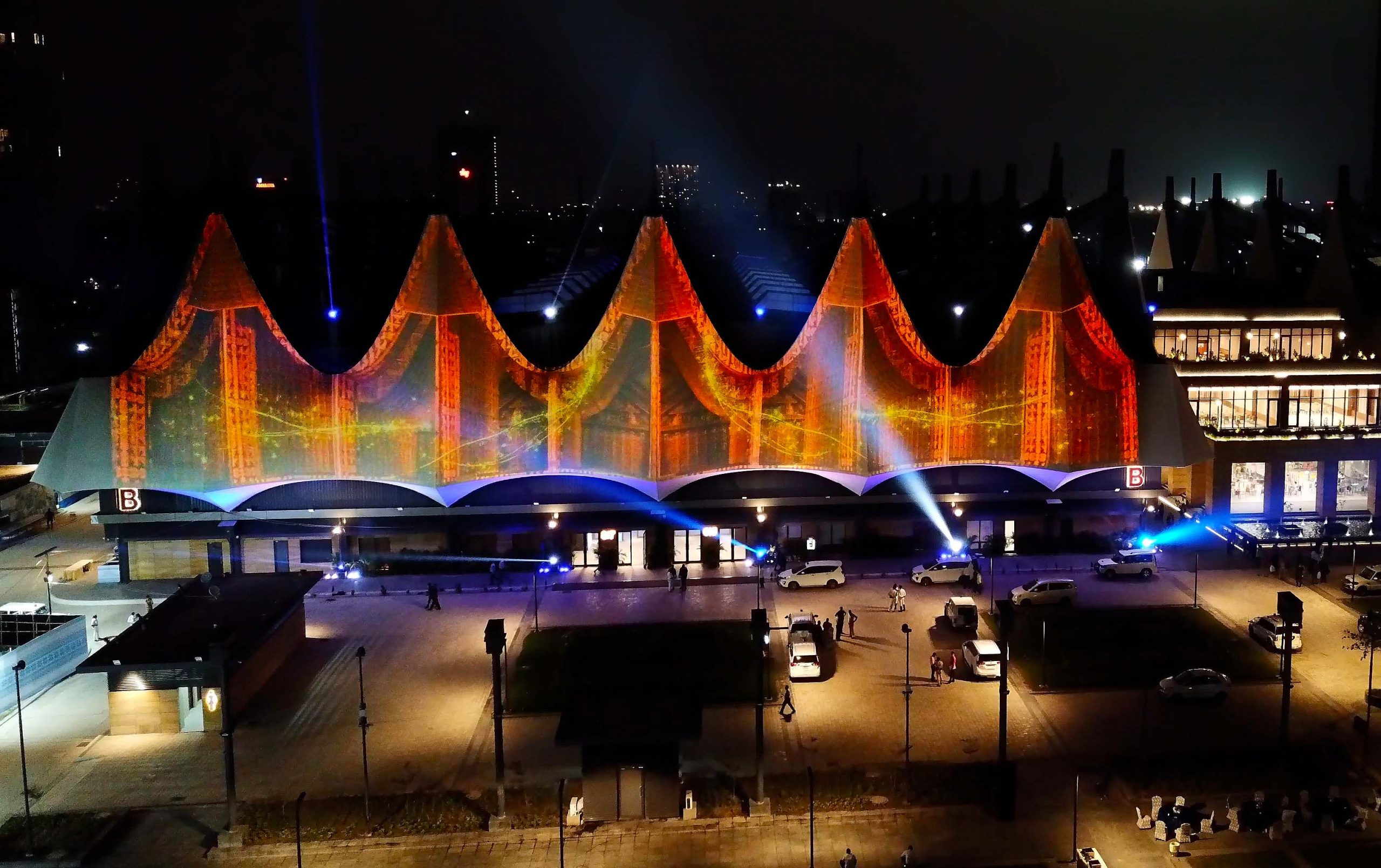 At night, the white tensile fabric that forms Milan Mela’s iconic angular-shaped roof structure becomes the canvas for a series of stunning projections accomplished by 12 Christie Crimson WU31 3DLP® laser projectors. They were installed and commissioned by Hi-Tech Audio Systems, while Studio Trika served as the content creator and consultant of this major project.
