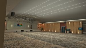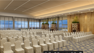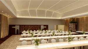 that is accompanied by two 474-square feet greenrooms, and 3,980-square feet dining hall, besides separate areas for rest rooms and other amenities.