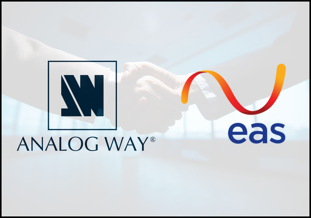 “With a strong presence in Singapore, I am very confident that this partnership will bring great success to both companies,” says Jez Lim, Analog Way’s Regional Channel Manager for Asia. “As part of our plan to develop the Singapore market, EAS and Analog Way will host a product road show in the months to come”.