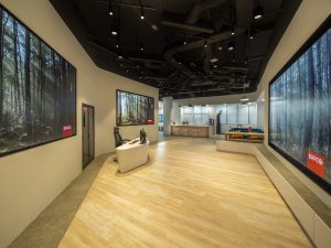 The Experience Centre gives visitors a unique insight into all of Barco’s solutions and technological innovations, across markets and industries. These include visualisation solutions ranging from LED Displays and LCD videowalls, to video collaboration tools and image processors. The new office space reflects the trend to optimise available space with an open working concept to create smaller, more multi-purpose areas for a collaborative mobile workforce. Given that most meetings are now video enabled, Barco’s facilities in the new office cater to the Bring Your Own Meeting (BYOM) trend. Employees can benefit from the available audio and video peripherals of the meeting space to boost the meeting experience for all participants. These facilities include more huddle spaces fully equipped with Barco’s videoconferencing tools such as weConnect and Clickshare solutions. The office also serves as a showroom, providing compelling experiences for visitors and customers alike.