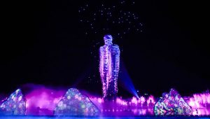 Supported by a fleet of 300 “dancing” drones that soared above Smile Square, the majestic extravaganza beautifully integrated lush landscapes with live stage performances, state-of-the-art projections, artistic lighting, holographic images, fireworks and environmental effects, culminating in an unprecedented and spellbinding 360° visual feast that has earned Nianhua Bay the status of “an unmissable night tourism venue in Wuxi”.