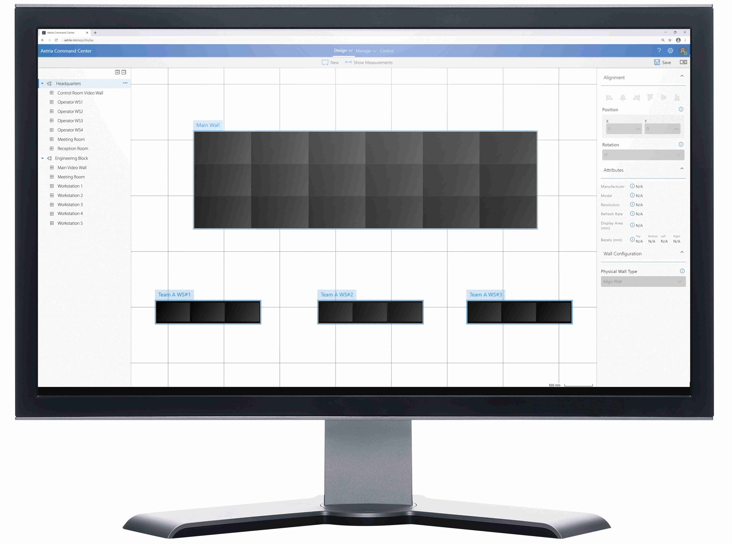 Aetria from Datapath brings all the elements of control room design, management, control and monitoring into a single solution, allowing integrators and end users to design systems to meet a wide set of requirements, including connectivity, video walls, workstations and source management, ranging from small to very large installations.