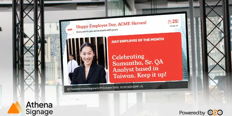 DVI Solutions, a leading workplace technology provider in Asia, is proud to announce the launch of Athena Signage, a digital signage platform built to transform workplace communication.