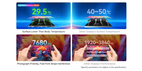The Icescreen QS0.9 utilizes Ledman’s core, original PSE patented technology, with patent grants already covering regions including China, the USA, Canada, Germany, Japan, and Australia. The featured model QS0.9, with its 0.9mm pixel pitch design, significantly increases screen pixel density. Simultaneously, equipped with a 7680Hz high refresh rate, it delivers smooth and detailed dynamic images, free from “moire patterns” or smearing during device capture, providing strong support for high-frequency display scenarios.