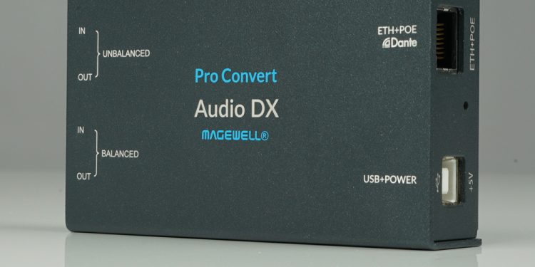 Magewell has announced the company’s first solution with integrated support for Audinate’s Dante audio networking: the exceptionally flexible Pro Convert Audio DX multi-format IP audio encoder, decoder, and capture device. The new hardware lets users easily convert audio between Dante, NDI, and SRT transport technologies while also seamlessly bridging analog audio, software, and IP networks.
