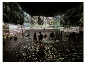 Set in a former movie theater, RXP reimagines the legacy of the Rex cinema space by bringing in a new, cutting-edge digital art experience. As the first immersive venue in Malaysia, the venue team wanted to get the details right and spent over a year planning, working with the participating visual artists, and designing the spatial audio tracks. The immersive environment includes 18 projectors mapping visual elements on the walls and floor, while the spatial audio design required that the venue be fully modeled in 3D.