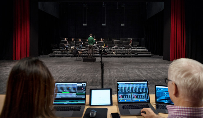 Now with a simple tap on a touchscreen, acoustics can be optimized for lectures, dramatic theater, opera, chamber music, or a symphony orchestra. The system also affords expanded opportunities for student experimentations in electronic music with dynamic 3D spatialization.