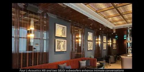 The St. Regis Bar received a carefully curated installation of four L-Acoustics X6i speakers with two SB10i subwoofers, creating the perfect audio environment for intimate conversation over evening cocktails. The system’s ultra-compact profile ensures the technology remains virtually invisible while delivering rich, full-fidelity sound that enhances rather than overwhelms the bar’s refined ambiance.