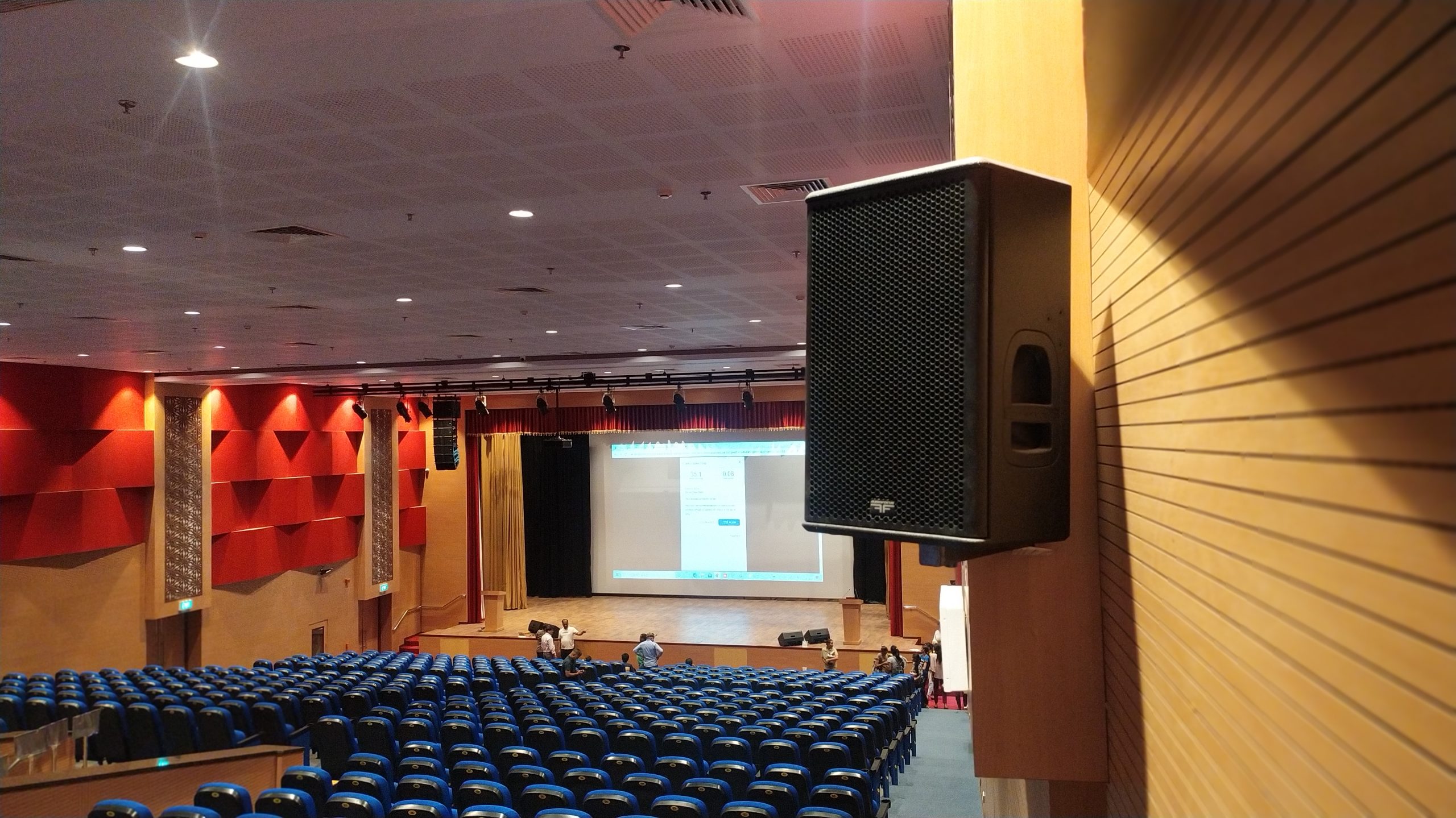 To cover the maximum rows of the auditorium, six Audio Focus Ares 8a 2-way self-powered line array loudspeaker along with one Audio Focus B18 high performance compact 18″ passive subwoofer each have been installed in a line array on both side of the Stage. To monitor the sound, two Quest QM3 Two-way Active Bass Reflex Speaker have been installed at both side of the stage and one Audio Focus CM15A 15″ self-amplified stage monitor each at both side of the Stage on Tripod have also been installed.