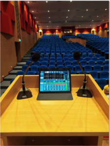 For the Sonic experience one Venu 12a – 2-way 12″ self-amplified point source loudspeaker each side have also been installed for the last few rows for fill. To manage all these gear, one Allen & Heath’s SQ6 – 48 channel / 36 bus digital mixer coupled with One DX168 96kHz portable expander for adding remote I/O to a mixer is also installed in the Sound Room along with iPad for the remote setting. To monitor the sound quality through Mixer, one Shure SRH240-A and One Quest QSA 200i have also been installed in the control room.