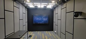 Lighting was another key feature. There are two unique types of lights used in the studio. When the presenter’s video being recorded including the presentation on the interactive panel, the lights’ shadow does not fall on the screen, and the lights do not hit the presenter in the eye. They are uniformly illuminating the space, making the presenter look pleasant and bright.