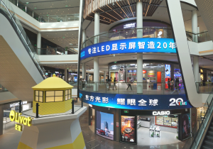 Walking into the north hall of Livat centre is the “power lighthouse”. Two curved screens behind the lighthouse are from YES TECH’s indoor fixed series. Two big screens are like large picture scroll, its viewing angle is 160° and covers more audiences.